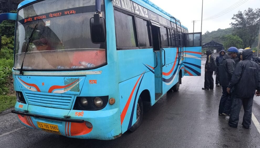 कुसमुंडा खदान में तेरह साल पुरानी बस से एसईसीएल के कामगारों को जा ढोया, बारिश की तेज धार भी बह रही बस अंदर