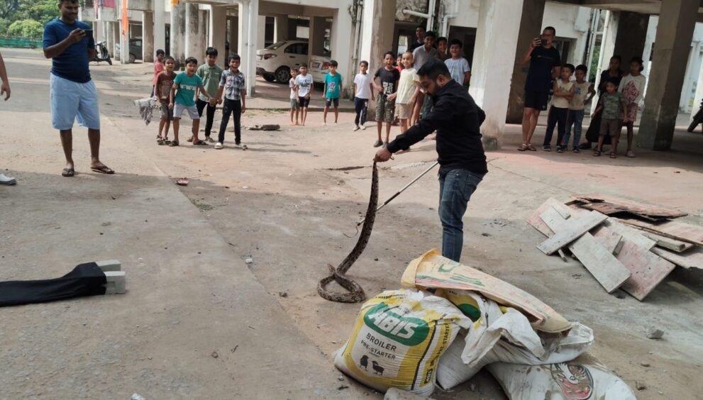 *पुलिस लाईन में जहां बच्चे खेल रहे थे वहीं छुप कर बैठा था अजगर, अजगर में जहर नहीं होता जकड़ कर करता हैं अपना शिकार।*